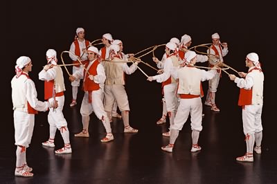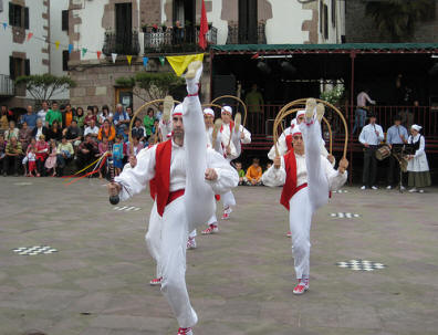 Uztai txikiena ("Dance of the small hoop") is part of the Gipuzkoan dance cycle known as Brokel dantzak. Originally is was all male; some groups also include women. See a fine website for this dance at: gipuzkoa.dantzak.com