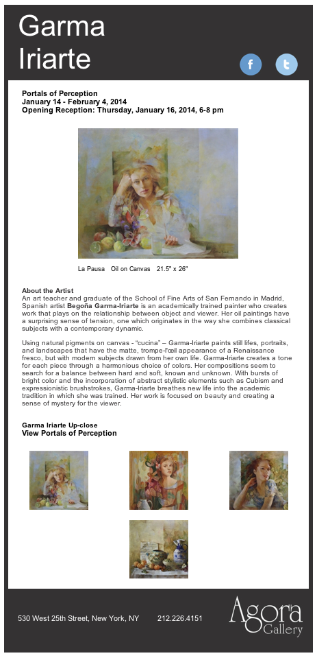 Our friends at the New York Basque club have extended an invitation to an opening reception tomorrow, January 16th from 6-8pm, to BegoƱa Garma Iriarte's exhibit at the Agora Gallery (530 West 25th Street, Manhattan). Garma-Iriarte is an academically trained artist who creates work that plays on the relationship between object and viewer. For more information on the artist and exhibit here.